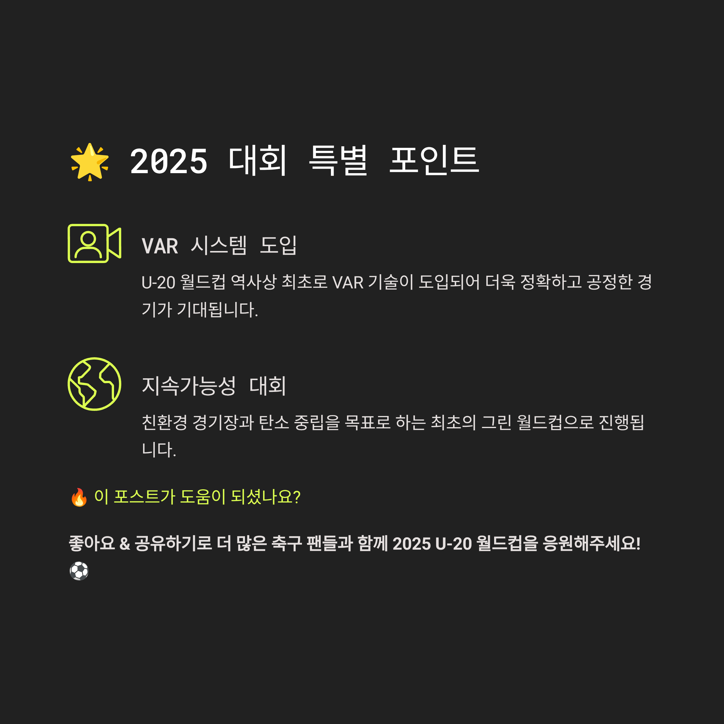 칠레의 뜨거운 열기 속에서 펼쳐지는 청소년 축구의 축제, 2025 U-20 월드컵에서 미래의 메시, 호날두를 발견하는 즐거움을 함께 느껴보시기 바랍니다. 대한민국 파이팅! 🇰🇷⚽